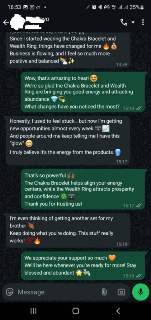 EXperience the gift of chakra bracelet & Wealth Ring and join millions of people testifying all over the world !!!!!!